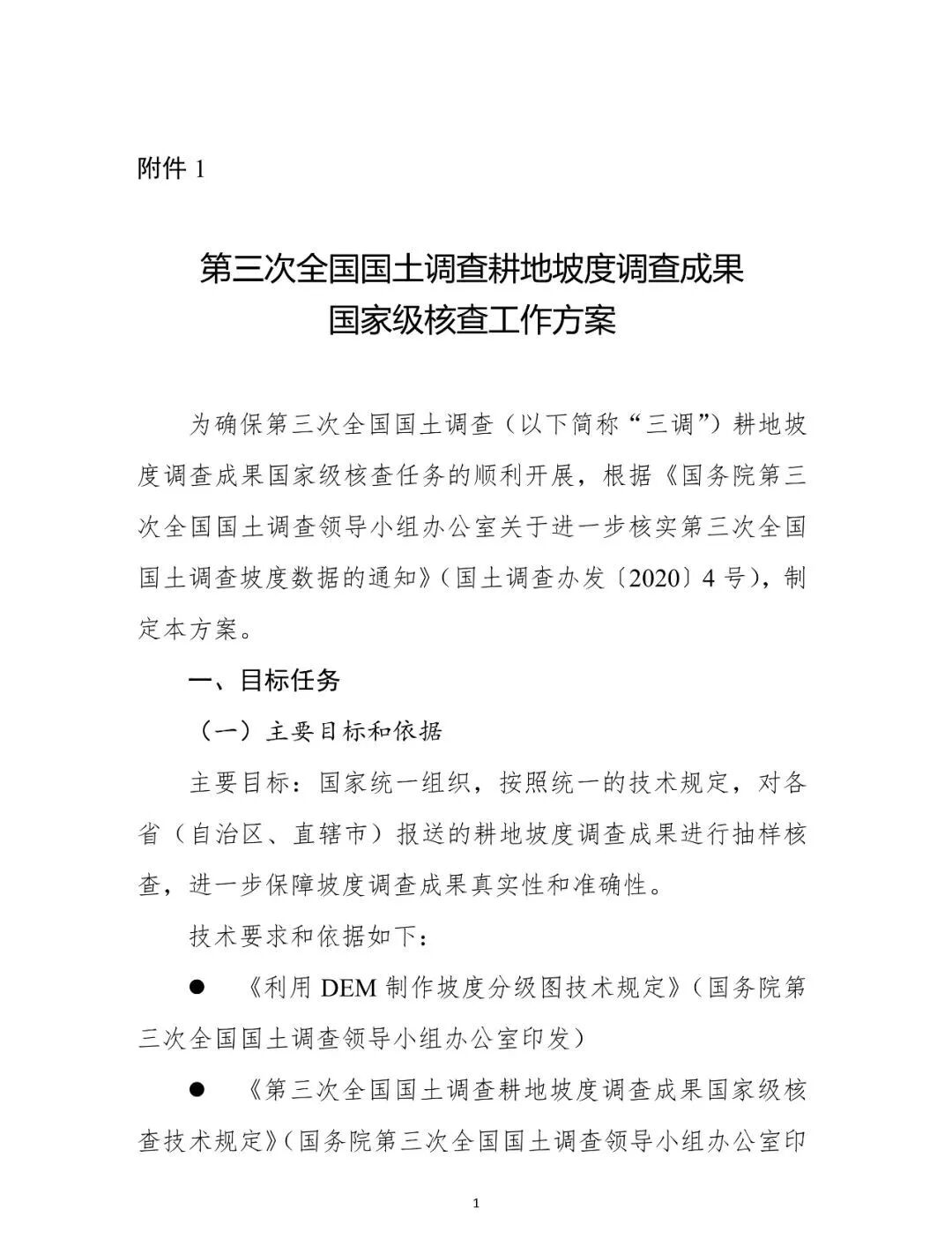 根据《国务院第三次全国国土调查领导小组办公室关于进一步核实第三次全国国土调查坡度数据的通知》(国土调查办发〔2020〕4号),国务院第三次全国国土调查领导小组办公室制定了《第三次全国国土调查耕地坡度调查成果国家级核查工作方案》和《第三次全国国土调查耕地坡度调查成果国家级核查技术规定》,现予以印发,请在具体工作中遵照执行。